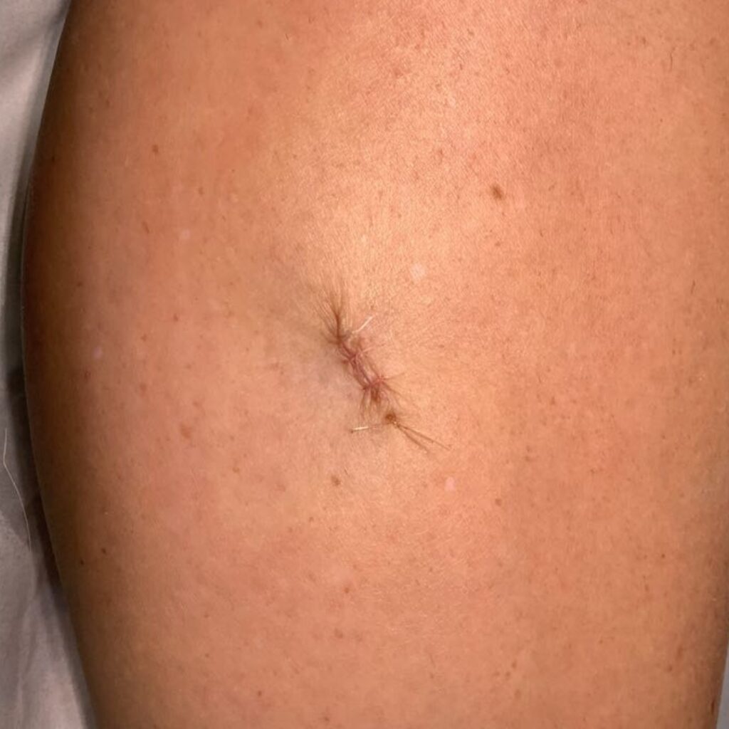 Following excision, patients are advised to keep the dressing in place for several days and avoid unnecessary strain on the wound while it heals. The scar usually settles well over time, although any excision will leave a fine line on the skin.