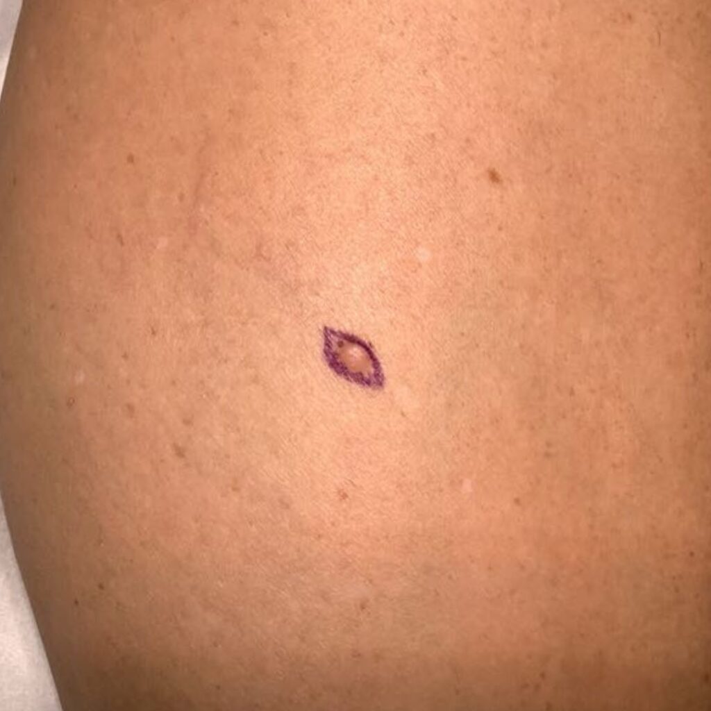 Following excision, patients are advised to keep the dressing in place for several days and avoid unnecessary strain on the wound while it heals. The scar usually settles well over time, although any excision will leave a fine line on the skin.